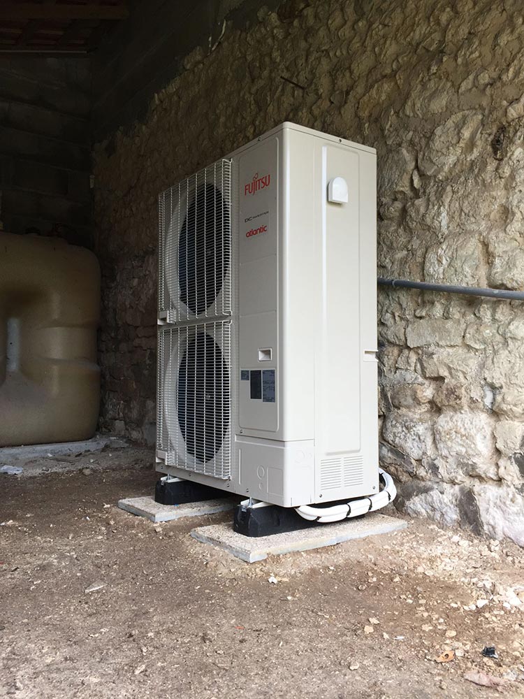 Installation d'une pompe à chaleur air/eau en remplacement de la chaudière fioul existante dans un corps de ferme à Conflans-Sainte-Honorine (78700)